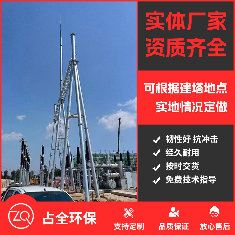 避雷针塔的塔材有圆钢和角钢的,迎风面积小,抗风的能力特别强大,塔主材使用外法兰盘或者角钢包铁进行连接,特别坚固,不容易损坏,成本也降低了。主塔正三角型或四角形造型结构,占地面积小,节约了土地面积,塔身重量轻,好运输,也方便了安装,安装工期短,风荷载曲线设计,遇到大风天气不易这段。结构安全可靠. 。